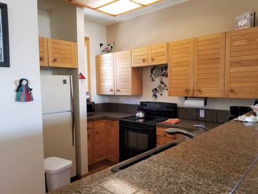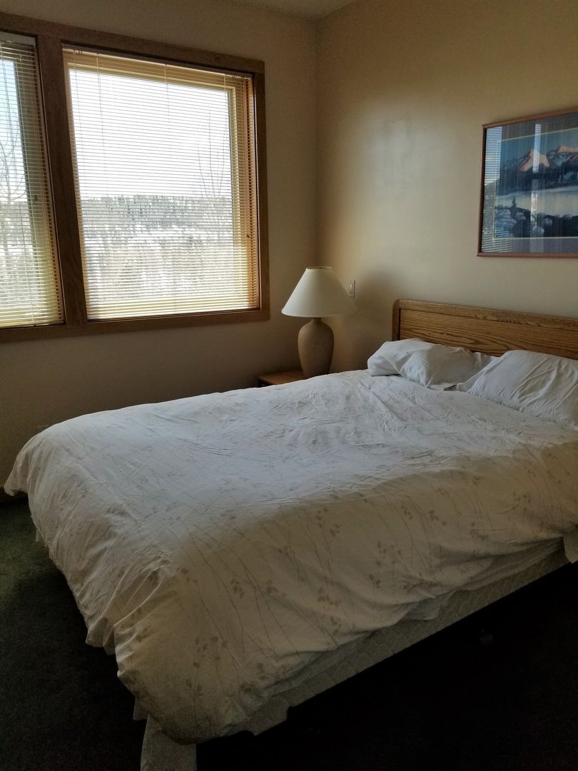 Enjoy breathtaking mountain and forest views from this bright, top-floor corner unit! This fully furnished 1-bedroom, 2-bathroom condo offers spacious living with a cozy wood-burning fireplace, a sunroom, and a 1-car garage. The property comfortably sleeps 4, with a queen bed in the bedroom and a full futon in the sunroom. On-site laundry facilities are available for your convenience.