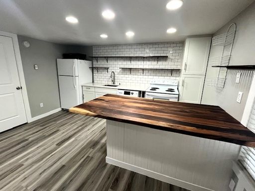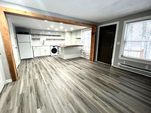 Features include recently renovated with fresh paint, new doors and trim, and stylish finishes throughout. Enjoy cooking in your updated kitchen featuring sleek cabinetry, updated appliances, and ample counter space. Relax by the wood-burning fireplace in the spacious living room – perfect for chilly mountain evenings. Step out onto a small deck with peaceful creekside views. Convenient Laundry: In-unit combo washer/dryer, plus additional laundry facilities available on-site. Primary bedroom includes skylight and guest bedroom includes built in murphy bed. A full bath located on each level for convenience.