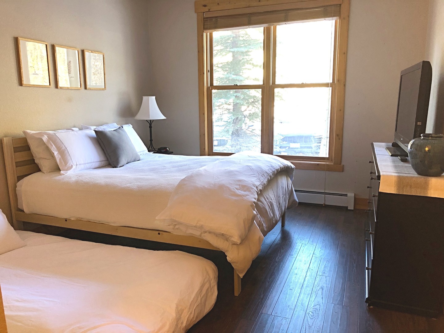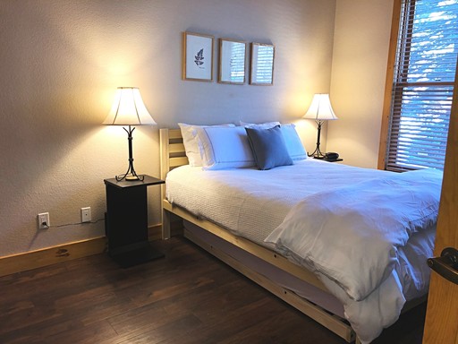 The condo comfortably sleeps 6, with two queen beds and two twin trundle beds. Amenities include a cozy gas fireplace, in-unit washer and dryer, and a private deck where you can enjoy serene forest views and the soothing sound of the nearby creek.