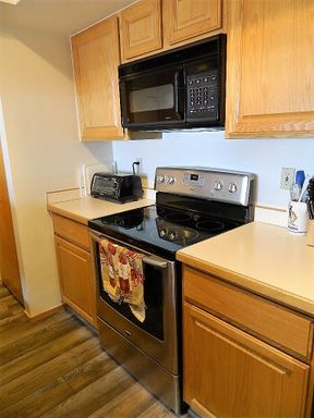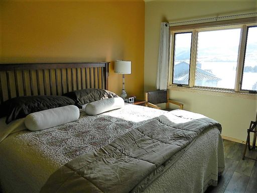 The condo comfortably sleeps up to 6 guests, featuring a king bed in the primary bedroom, a queen in the second bedroom, and two full size beds in the loft—ideal for families or guests. Relax after a day on the slopes or trails by the cozy gas fireplace, or unwind on your deck with beautiful lake views.