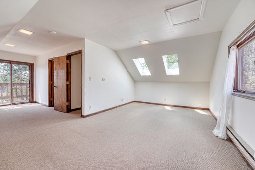 Upper Level: Boasts a versatile open room suitable as a bedroom or office, complete with a full bathroom and a private deck offering stunning mountain views.