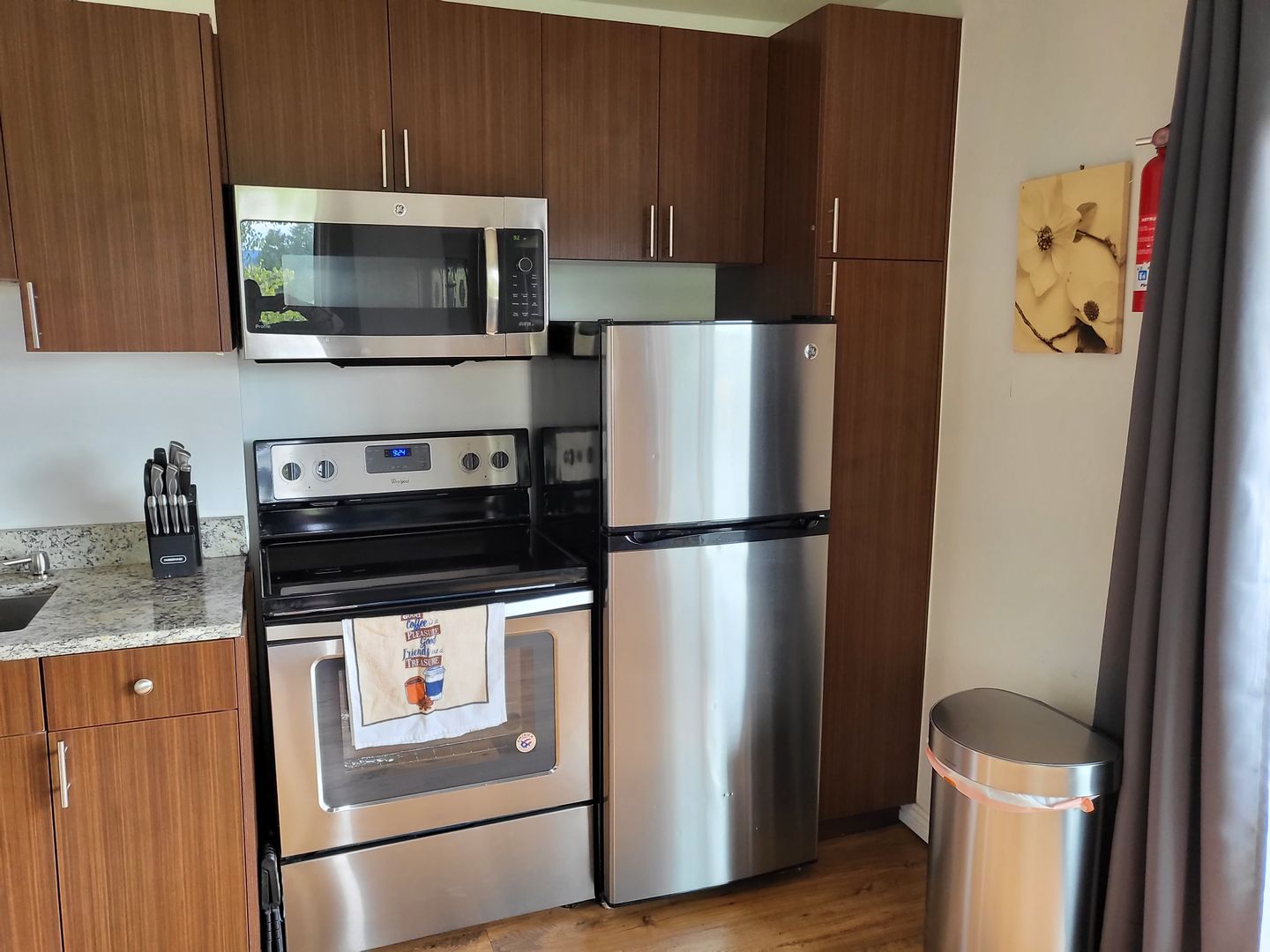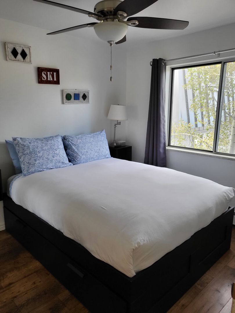 * Sleeps 4 (queen bed in primary bedroom + queen sofa sleeper in living room)