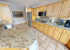Fully Equipped Kitchen with Slab Granite, Stainless Appliances -