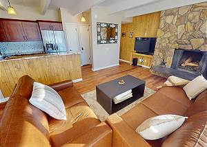 Comfy Living Area with Flatscreen, Wood Fireplace -