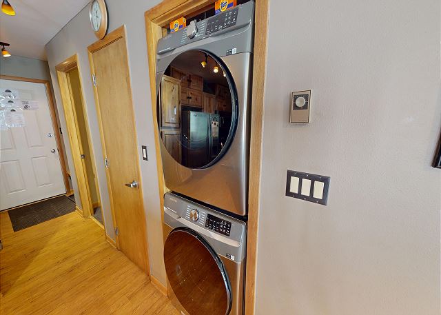 "We had a really nice stay at this conveniently located property. As a couple with one of our older children along, there was sufficient room for us in this efficient 2-BR condo, and we were glad to be able to bring along our 7-mo lab since it was pet friendly. The unit was clean, well-equipped and we liked the in-unit laundry, wood/fireplace, and two bathrooms as convenience and comfort features. The first-floor entrance on the parking side was nice, and the balcony facing the mountains was up one level on the other side for safety and not having a ground-level feel at all. Best features: fantastic view over an open creek/pond basin to the foothills/ski slopes beyond, easy access to walking path behind unit and a 10-min enjoyable walk to River Run village with all of its shopping, restaurants, etc. or a 5-7 minute walk to the Peru lift base area. A few amenities were needed — lighter for fireplace, broken coffee maker— but management said they’d replace. Otherwise an enjoyable comfortable stay we would repeat from our home 2hours away."