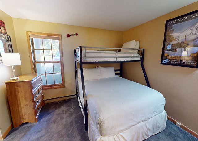Walk or shuttle to the Keystone slopes and ski/ride school. Arapahoe Basin is just 5 minutes away, Breckenridge and Copper Mountain 25 minutes. Located along the Snake River near beaver ponds. It is in the Mountain House Base Area of Keystone. Also walk or shuttle to nearby restaurants and River Run Village restaurants, shops and snowsport rentals. In summer enjoy festivals and events at River Run Village, mountain biking, cycling, golf at two championship courses, hiking, horseback riding, kids activities at Keystone Lake and more. Winter resort activities include tubing, ice skating, sleigh rides and events. Near the Keystone wedding venues and Black Mountain Lodge at Arapahoe Basin. Safety features include smoke and carbon monoxide detectors in unit, deadbolt and outdoor lighting.
