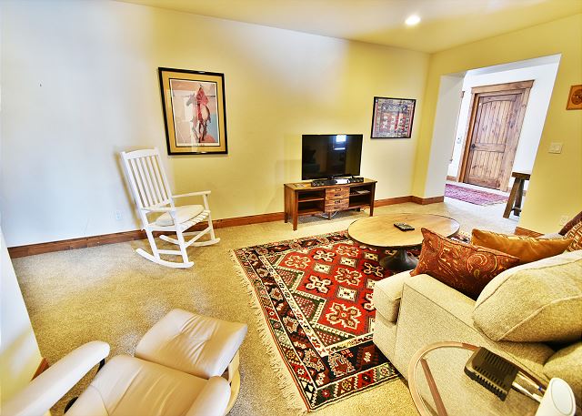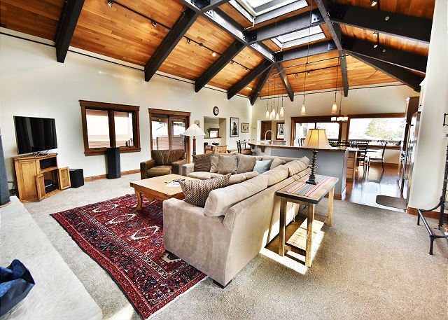 Living Room Sectional, Flatscreen, Wood Fireplace -