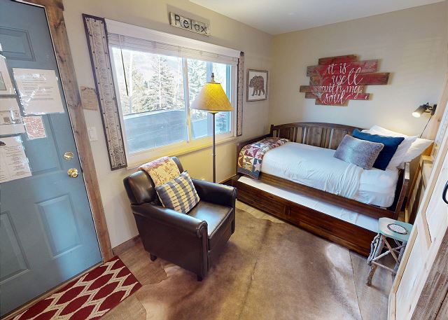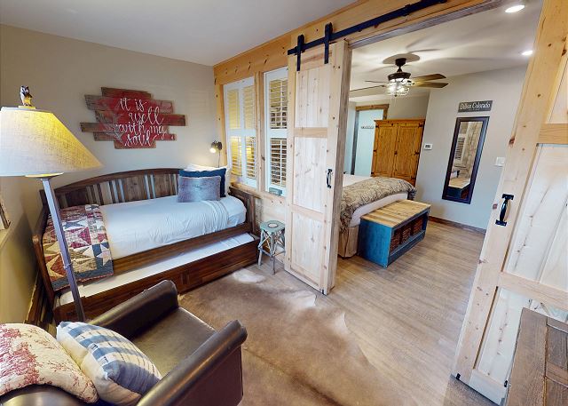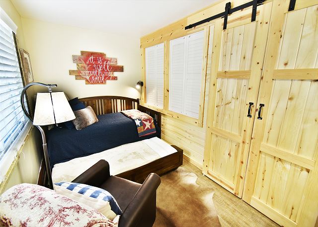 Bedroom has King, Barn Doors and Shutters to Separate from the 2 Twin Trundle -