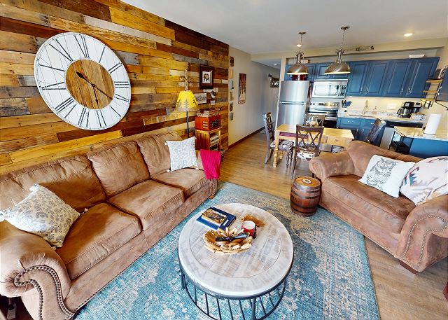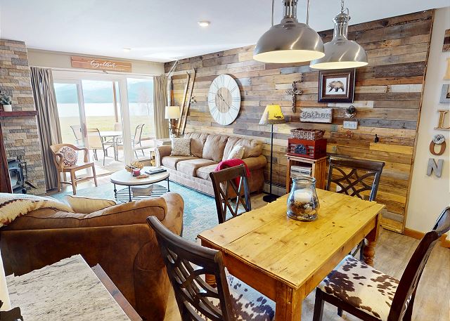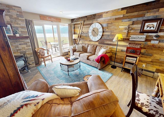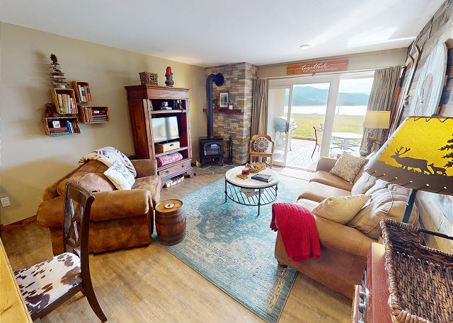 Beautiful Living Area with Wood Fireplace, Flatscreen -
