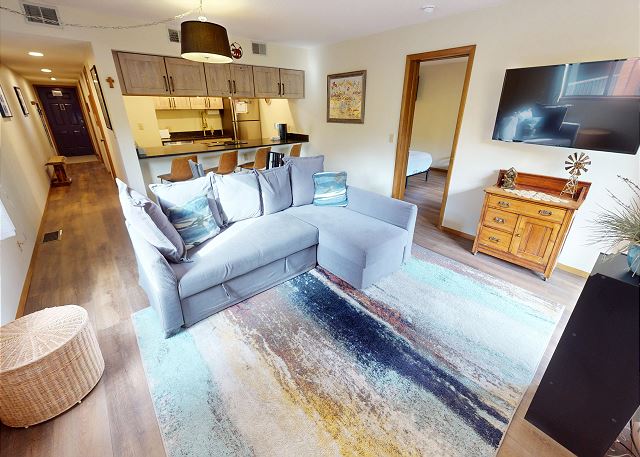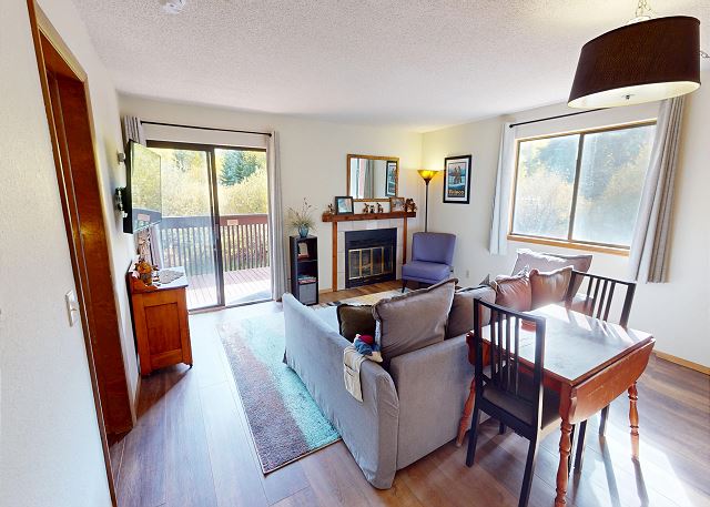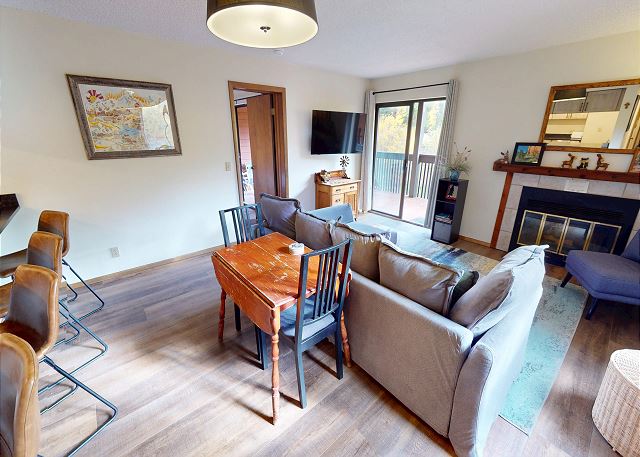 Spacious Living Area with Flatscreen, Wood Fireplace -