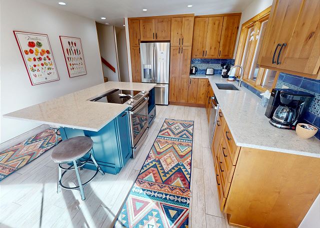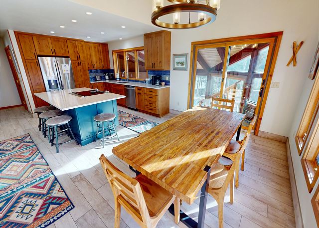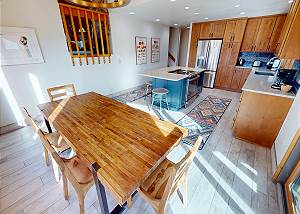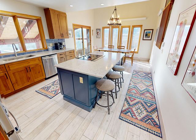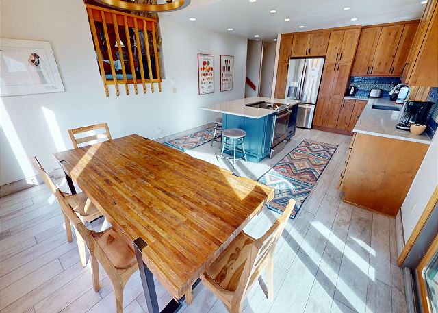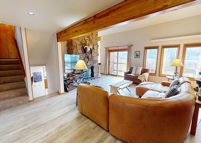 New carpet and flooring, living room furniture and fresh paint in December 2025! Kitchen and baths are remodeled. Tate's Ski Haven is a big, comfortable 4 bedroom, 3.5 bath half duplex with a 2 car garage. Sleeps 8. Private indoor hot tub makes it easy to relax after a day outdoors. Incredible mountain views and a large south facing deck. Over 2700 sq. ft. of living space. Mountain and southwestern decor. Fully equipped, large kitchen with beautiful kitchen island that seats 4. Lots of prep space for meals with family or friends. Dining table seats 6. Flatscreen, wood fireplace, wet bar and comfortable leather seating in living room. Free WiFi and cable. Full size washer and dryer in the unit for convenience. Every window has a mountain view. Entry loft area provides even more space.