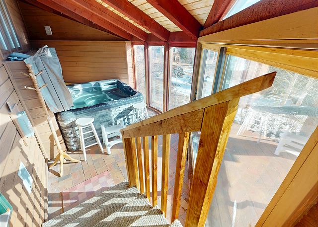 "It’s 5 short flights of stairs. Not good or bad for me. Just saying. Also, if you’re looking for fancy, keep searching. This was a spacious duplex with enough room for all of the kiddos that we could handle in one household. Space/beds for 4 adults and 4 kids and we loved it. We even invited friends that were at keystone over for a big dinner before they headed back to Denver. The access to keystone was pretty easy as well as the nearby city market. Having a double garage was very convenient. The hot tub jets weren’t working but it was still hot. Overall, the unit has a bunch of pace to spread out and is conveniently located to keystone and Dillon. The decor is outdated but who cares. "
