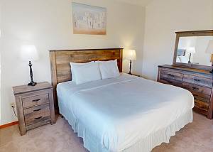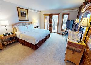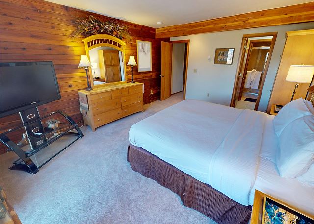 ~ King, private bath, flatscreen, door to the deck and yard in lower level master.