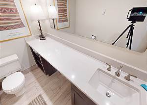 "Overall, we were enjoyed our stay. The house was conveniently located to skiing and restaurants. While the house had ample room and was well stocked, it should be noted that it is on 6 levels so the stairs could be a problem for some guests. Also, the loft is right off the garage so not ideal as an extra sleeping space because all the shoes, ski boots and coats are left there. With regards to cleaning, the bathrooms could have used some deep cleaning. There appeared to be something like construction dust on the countertops and bathtubs. "