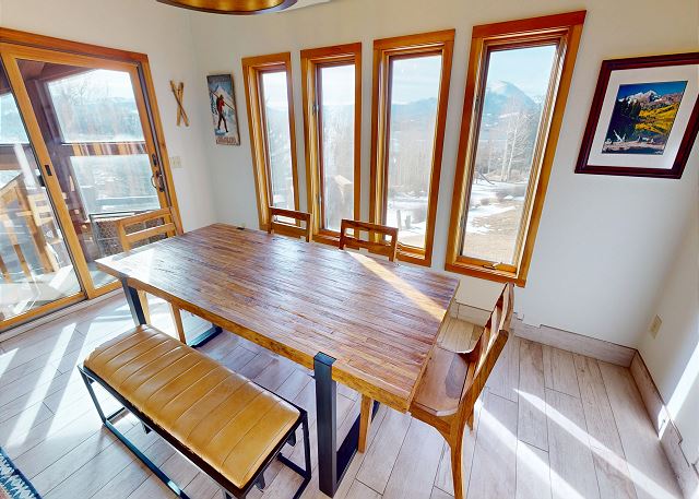 Easy access to I-70. In the winter it's just 7 minutes to Keystone Resort, 15 minutes to Copper Mountain, Arapahoe Basin or Loveland, 25 minutes to Breckenridge and 30 minutes to Vail. From Jan-Mar enjoy the Dillon Lake Loops which are flat, groomed trails for hiking, cross country skiing, fat tire biking and snowshoeing on frozen Lake Dillon.
