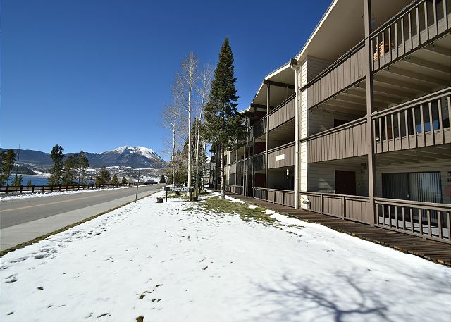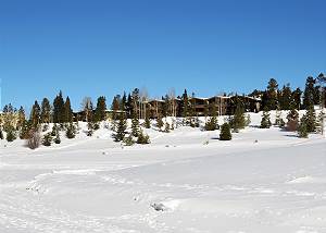 Timberline Condos Winter Exterior from Lake Sledding Area