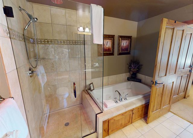 ~ King, flatscreen, private bath with double sinks, jetted tub, shower in master