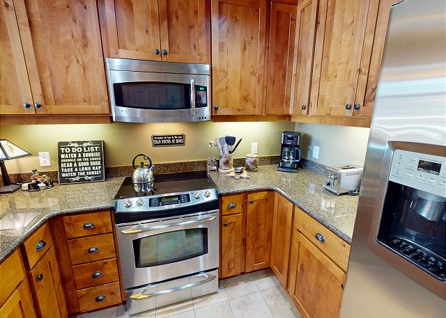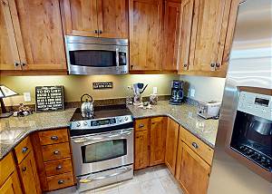 "Unit was much bigger and nicer than we expected (too many photos are shot with a wide-angle and then you show up and the place is smaller). We had 4 of us in the kitchen at times. The unit is well maintained and nicely equipped (even had crock pot). TVs are older but good. Master bed was very comfortable (although one picky sleeper said guest bed wasn't as comfy). Lots of comforters, pillows, etc. Property Management company was professional and courteous. Only wish they could plop this in the middle of Main St. :)"